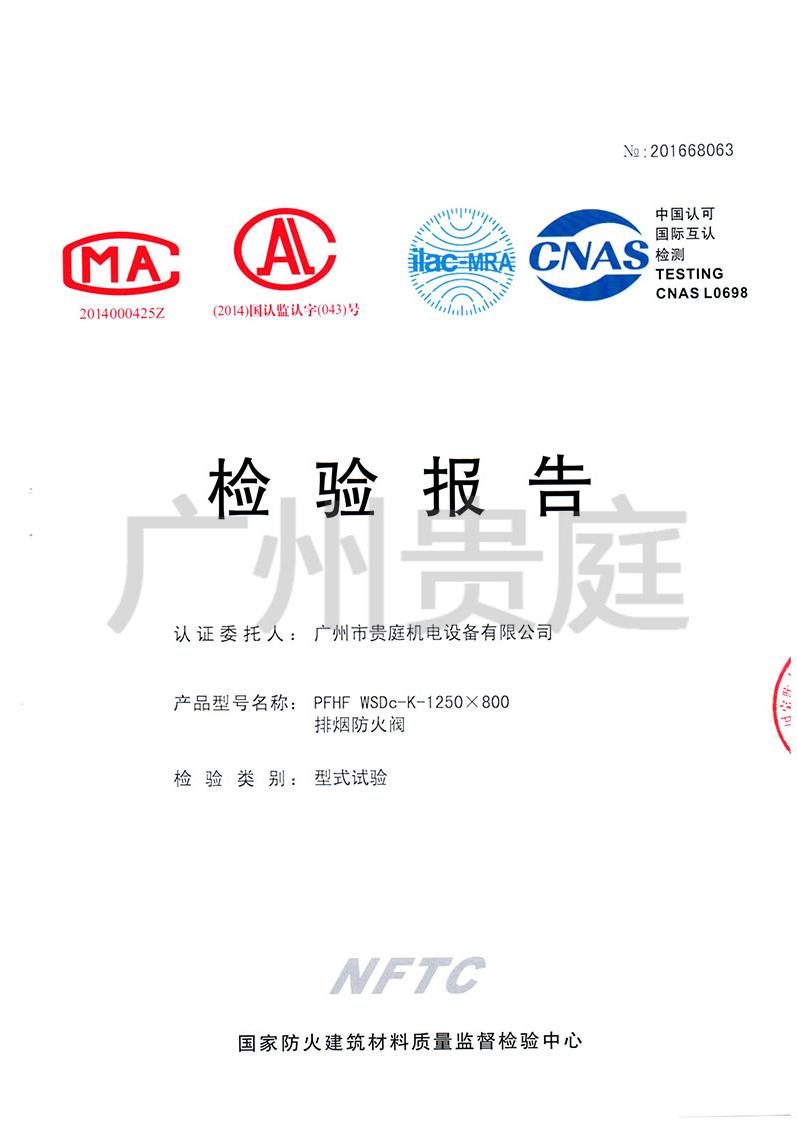 ?珠海市貴庭馬達的裝備無限的公司化合物通風防腐閥PFHF WSDc-K-1250*800已擁有CCCF企業認證 東莞市貴庭三相電機設備不斷機構專業生廠消防火災系統軸流風扇、通風防災閥、百葉簾藍海等消防火災系統結果